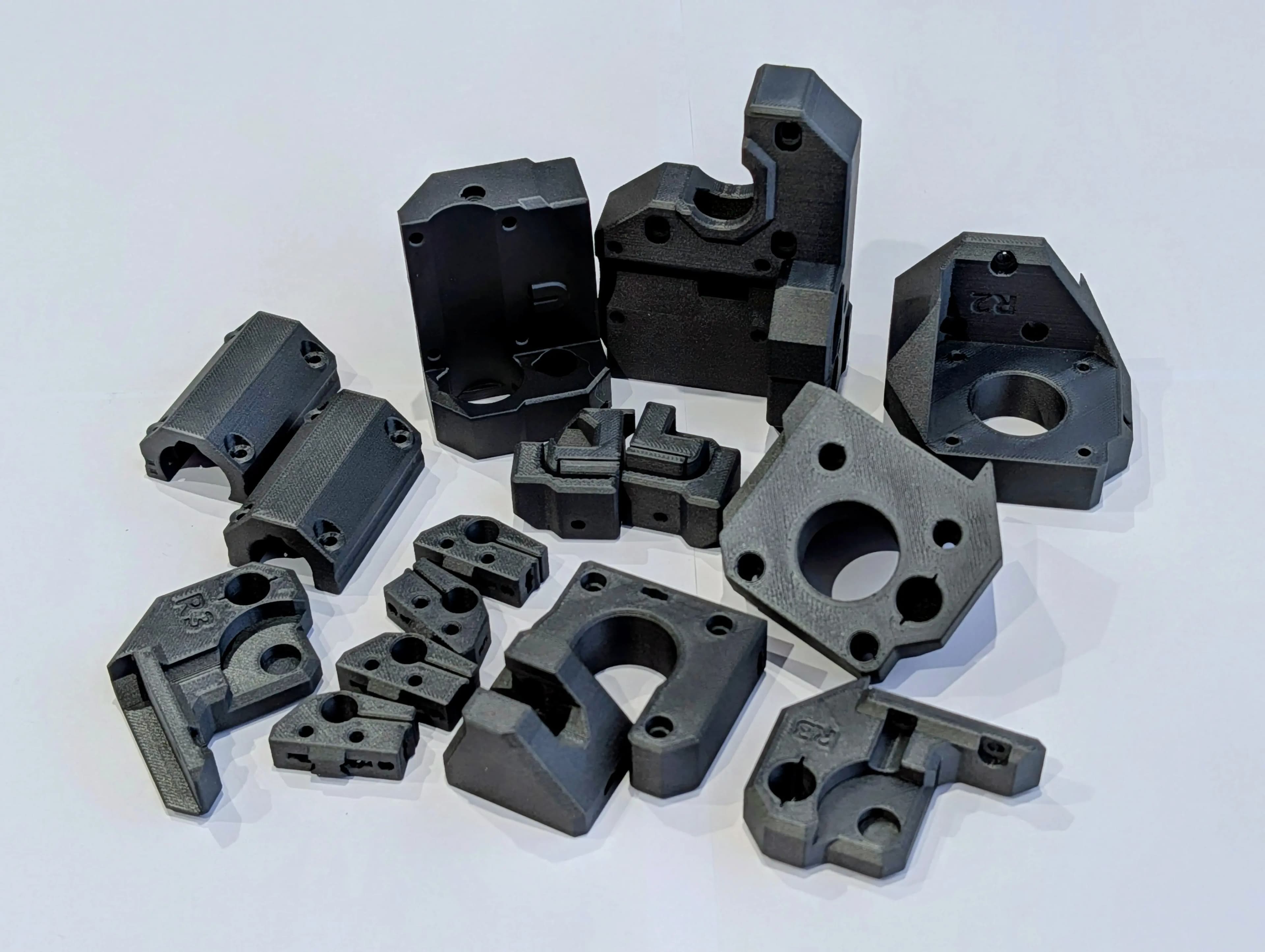Zpevněte základní konstrukci své tiskárny MK4S. Tato sada obsahuje všechny klíčové díly pro pohybové osy, které drží tyče a motory. Použití materiálu Prusament PCCF zajišťuje, že se držáky nebudou deformovat ani při vysokých teplotách v boxu nebo při vysokých akceleracích.